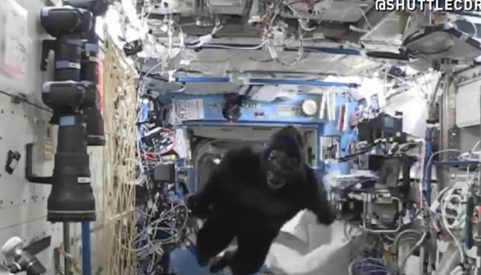 नई दिल्ली: अंतरिक्ष में गोरिल्ला? क्या ऐसा हो सकता है? इंटरनेशनल स्पेश स्टेशन में एक गोरिल्ला को एक अंतरिक्ष यात्री टीम पिक का पीछा करते हुए देखा गया। दरअसल अंतरिक्ष यात्री स्कॉट केली और टीप पिक के बीच चल रहे मौज-मस्ती के पल थे।